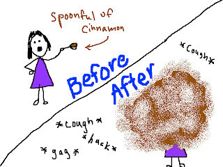 (I wanted to insert a YouTube video of someone doing the Cinnamon Challenge, but every single one has serious profanity, for obvious reasons. So here's a picture instead.)