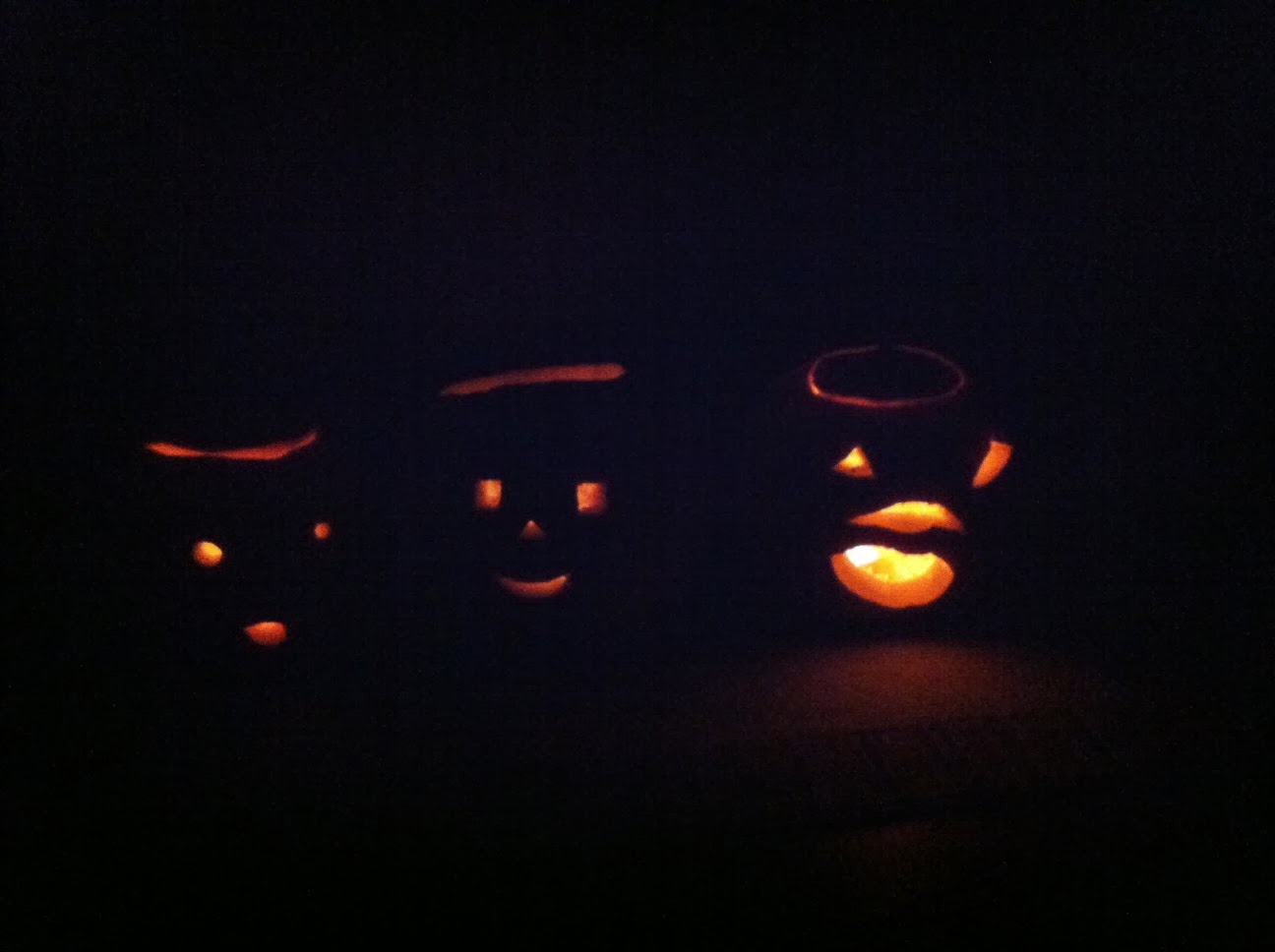 Here they are. Dazed, Vacuous, and Confused. Our gourdy triplets. Every year, I put off this one holiday tradition for as long as I can, sometimes trying to convince my kids that magic markers are really, truly, JUST GREAT for decorating pumpkins.Well, this year, for a change, we actually did the deed. It was super slimy, I broke all three special carving knives that came in this (what seemed like) nice pumpkin carving kit, and I overdosed on Old Bay-covered roasted pumpkin seeds in my attempt to recover from the situation.