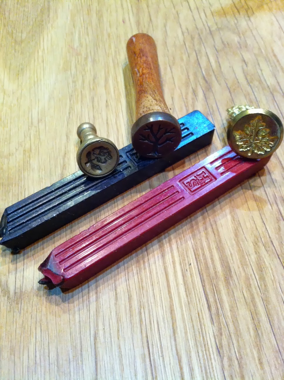 Sealing wax with stamps (rose, leafless tree, and maple leaf)One of my childhood friends and I would sometimes send each other letters complete with genuine wax seals and stamps. That took a little practice! You had to drip just enough of a blob bigger than the stamp diameter, and press just at the right time, or it wouldn't work. And that wax burned waaay hotter than candle wax! The scar on my thumb has since faded. ;)