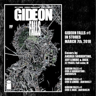 While ROYAL CITY and DESCENDER will continue I also have a new series, GIDEON FALLS, coming in MARCH with artist ANDREA SORRENTINO and DAVE STEWART. Andrea and I worked together on Green Arrow and Old Man Logan for Marvel and DC, bit this is our first creator owned book. Its a supernatural horror series, a rural mystery. More details to come soon.