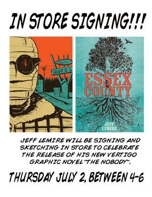Due to a mix up The Nobody will ship a week late and will now be in bookstores July 7 and Comic Book Stores July 8. I will however be signing at Comics And More at Danforth and Greenwood (steps from the Greenwood subway stop) in Toronto THURDSAY JULY 2, between 4-6 and I will have advance copies of THE NOBODY for sale a week early! I will also have a limited edition Nobody print, free for anyone who wants one and some other freebies, original artwork etc.