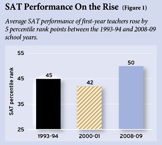 First: Neerav Kingsland says that SAT scores of new teachers are rising and that most of them are staying in teaching for at least five years. He comments: “If I was going to bet on whether American education will improver, flatline, or get worse — I would look very hard at the academic performance of teachers entering the profession, as well as how long these better qualified teachers stayed in the classroom. The aforementioned data makes me more bullish on American education.”