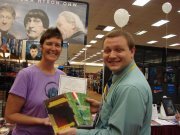 Next was manning the table for a few hours, trying to promote my wares and get people involved in the drawing. Sadly only three people entered. Thankfully, Kim was the most excited about my book and ended up winning them!