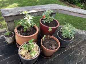 Tomatoes, strawberries (called Camino Real so we had to get it!) and herbs!