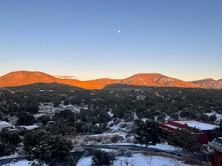 And, if you’re interested,here are a few more Santa Fe pictures. Counterclockwise; fresh snow, me with Maddie (my oldest grand) and her boyfriend Trevor, and me with the super margarita-making bartender named Juju. Sorry for the misalignment but t's the best I can do.