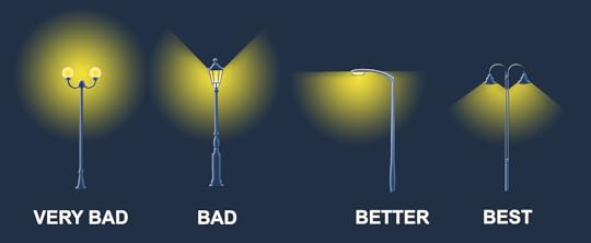 What can we do? Use motion sensors, dimmers, and timers. UseLED lights but only in warm tones, never blue, and lower the wattage. Use fixturesthat direct light downward, never up nor over a wide expanse.