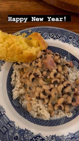 The primary traditional foodon my mind tonight is black-eyed peas, because I fixed a big pot yesterday andlet them sit in the fridge overnight to gather flavors. Then today I cookedthem more, cooking down the excess liquid and getting the peas to just theright stage of mushy. After fifty-five years, I consider myself pretty much aTexan (barring some of the things that implies today), but there are parts ofme that had a hard time leaving a northern, Chicago background behind. I was inTexas a lot of years before I consented to try black-eyed peas. Then I tried todisguise them, burying them in the rice and tomatoes of Hoppin’ John. But in recentyears I’ve come to appreciate the humble pea.