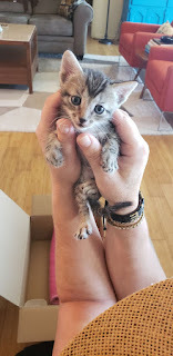 After years of both Christianand me saying, “No more cats,” a kitten lives in the family room in the mainhouse. Jordan was visiting at a neighbor’s lake house, and the two of themfound an apparently feral kitten, probably about four weeks old. Far too youngto survive on its own. They brought it inside, gave it milk, and decided toco-parent. There was no sign of the momma, though in later days they did seeother kittens. None were as lucky as Charlie to be adopted.