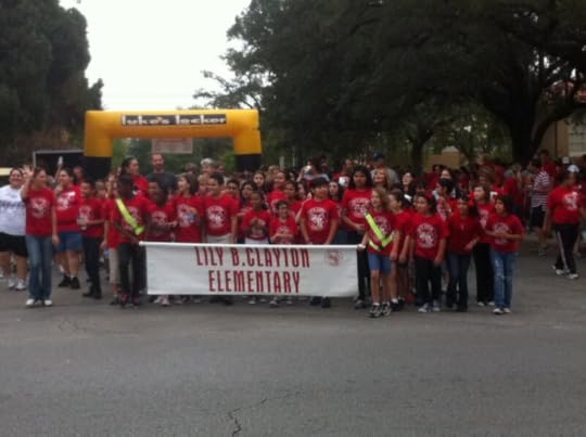 t happens once a year. Today wasthe day. I was awakened at seven o’clock by the sounds of a marching band,complete with drum rolls. The high school marching band was tuning up orwhatever they call it directly across the street from our house. We live acrossfrom Lily B. Clayton Elementary School, a historic school with an enthusiasticparent support program. The occasion today was the annual Lily B. Walkathonwhere all students who are able march a mile through the neighborhood, alongwith teachers, parents and friends. Neighbors sit on their porches or frontlawns to wave and encourage the walkers. The parade is led by mounted policeofficers, the marching band, and often a city official in the requisiteconvertible. It’s really a terrific neighborhood occasion. And a fundraiser forthe school. This year the kids raised $58,000 by getting people to support themin the walk.