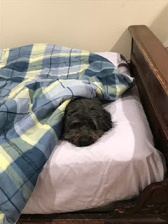 She has always disliked my beingin bed—will sometimes wake me, just to get me up. So she’s doubly unhappy thesedays when I go back to bed several times a day. I don’t let her have access tothe back yard when I’m not up and keeping an eye on her, so that adds to herfrustration.