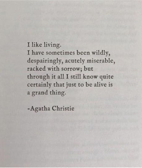 You don’t have to be a coymistress to get the meaning: death is always just around the corner, and younever know when its chariot is going to catch you. I think Marvell, centuriesago, and Christie, fifty years go or more, have the same message for us:enjoy life while you can and don’t anticipate death. It will come when itcomes. I fully understand Christie’s sentiment about having been miserable—haven’twe all been there one time or another, when we’ve lost a loved one, faced adisappointment in love, lost a job or a career—and yet the trick is to admitthat you love life overall. That may be the whole energy behind suicide hotlines.
