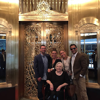 My gang and me in front of Tiffany elevator doors in Chicago's Palmer House.