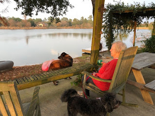 Colin's lake in Tomball. Note Sophie next to me.