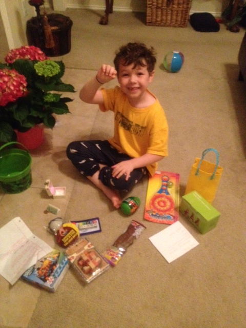 Ultimately the day was mostly about kids. Jacob began the day at 5 a.m., waking his parents because he had a bonus morning, both the Easter bunny and the tooth fairy visited during the night. That tooth has been hanging for weeks, but he wouldn't let anyone touch it. A stray elbow in a bouncy house at a birthday party yesterday did the trick.