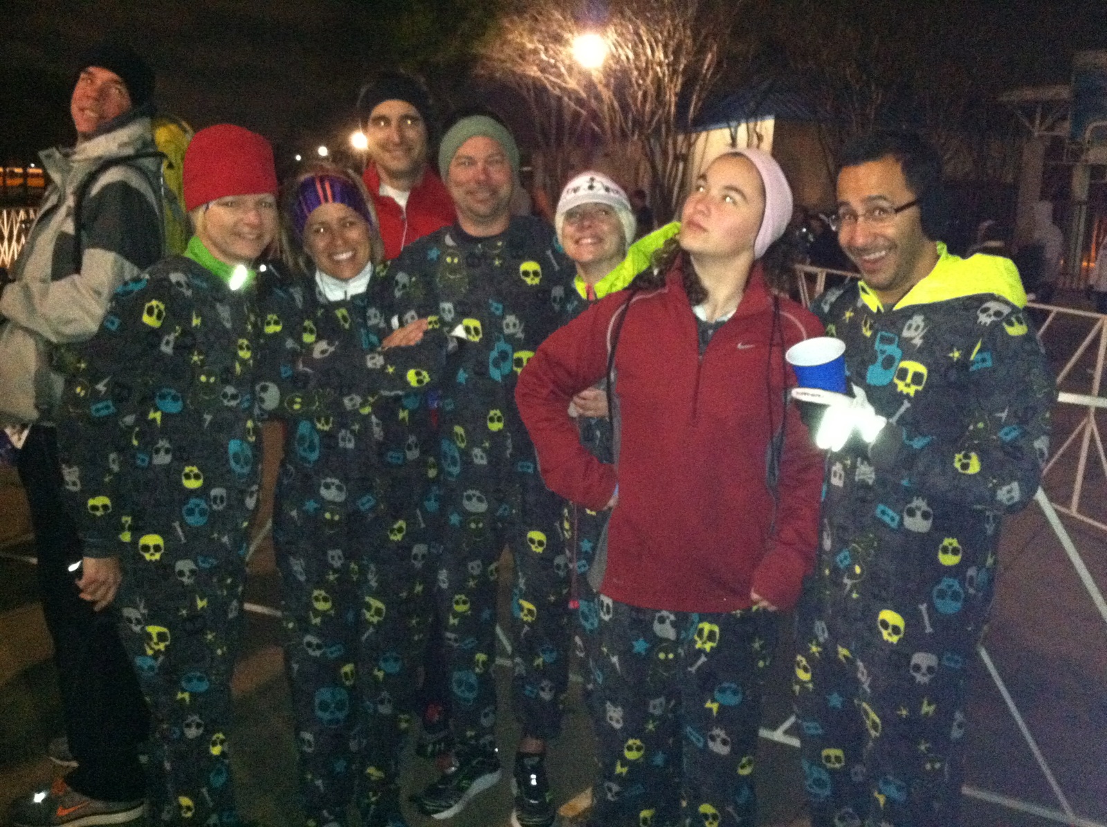 And below are my other three, two with spouses, one member of the extended family and my oldest grandchild. Aren’t teenagers wonderful? The look on her face clearly says, “I don’t know these people, don’t know why I’m with them, don’t know why I’m dressed like them.” It was probably about 6:30 a.m. Sunday at Fair Park in Dallas, and the temperature, so they tell me, was 38 and the wind at 45 mph. The Rock ‘n Roll half marathon began at seven, and they all finished it, though I’ve had no word on times. Megan, my oldest daughter who was responsible for the matching pajamas, ran with my granddaughter, Maddie, and says they mostly ran but walked a little—due to Megan’s knee and Maddie’s ankle. Maddie is a superb athlete and star basketball player—lives and breathes the game, though she’s no slouch on the soccer field either. I remember not too many years ago going to either a basketball or volleyball game when most of the girls stood and watched the ball without moving. She’s grown up in a lot of ways, and I am so proud of her. And love her sense of humor—you can see the smile in her eyes in this picture.
