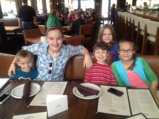 Jordan, Jacob and I came home this afternoon. She and Christian had a big school auction to go to tonight, and in Frisco six adults and one teenager will run a half marathon in the morning. Then most will go straight home. I could have stayed and helped Melanie watch and feeed the six children left behind, but it seemed better this way. Tomorrow Jacob and I will go to Palm Sunday services, and Sophie is glad to have us home tonight. We had supper at the Star Cafe and then I let Jacob wander through the tourist-y emporium next door. I had made him promise not to ask me to buy anything, and he didn't, but he'd look at the price on everything and then ask, "Juju, did you bring that much money with you? I saw a twenty in your purse." I assured him I as not using the twenty for any of that stuff, especially the fake guns that he kept asking me if they were real..