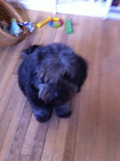 My "puppy" is just two months shy of her second birthday, and she is so much calmer. She's taken to sleeping at my feet, under my desk, though sometimes she just goes and crawls happily into her crate. I guess this afternoon I wakened her before she was ready, because she clearly didn't want to come out. She follows me from room to room. The other day she lost me and suddenly came bounding into the bathroom, pushing the door open, as if to say, "There you are! I found you!" She still has her moments--goes crazy bonkers over Jordan and anyone new, like the dog groomer this morning. Also Greg who does the lawn, Lewis who keeps my house running. Last night, with ten adults and three children for dinner, I had to tell Jacob emphatically that no, he could not let her in. But she's finally growing into a well-behaved dog. Home alone with me, she's calm, quiet, sometimes begs for attention but we've pretty much reached an agreement on our lifestyle.