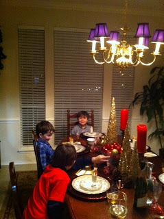 A P.S. I can't resist: Jacob said the other day, "I kind of wish we weren't having the party. I'd like some of that melty cheese Juju made last year." I'd forgotten that he spent New Year's Eve with me last year, and I fixed cheese fondue! I've promised to make it for our Twelfth Night Supper when we, following family tradition, each throw a twig of greens into the fireplace and make a wish. Do you know how hard it is to find someone with a live green tree these days?