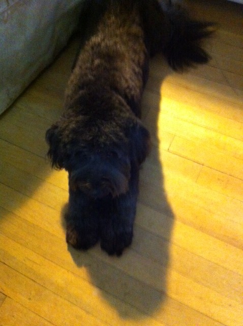 But tonight she looks like a poodle again, and I'm frustrating. I've spoken to the groomers, and today I took them specific instructions: hair on the head to be twice as long as the coat and not shorter any place. They shaved part of her face, leaving her that shelf across the top of her head. I know, I know, it will grow out, but I'm frustrated. I've used the same grooming parlor for years and will now be making a change. In the interest of making easy for me, I'll use the groomers who come to your house. (Sophie gets so enthusiastic and excited on trips that I'm truly afraid of being draged to the ground--or losing control on a busy street.