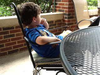 This weekend at his cousin's eighth birthday party, I saw him standing at the edge of the pool, watching the "big" kids swim freely. I surmised he was too embarrassed to put on a life jacket when all those older kids were strong swimmers. Later when I looked, he was sitting alone in the hot tub shallow portion, looking fairly lonely and forlorn. But then for some reason he put on the life jacket and joined the fray. We couldn't get him out of the pool the rest of the weekend. In the middle of the deep end? Not a problem--he just dog paddled wherever he wanted to go and shouted, "Look, Juju, I"m swimming." We could have rescued him, pitied him, etc. but we didn't, and he figured it out on his own.