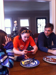 Nobody got moving quickly at this house. It was 9:30 before the gang from the apartment came in; meantime Sawyer and Ford asked every ten minutes when Jacob would come inside. I explained he sleeps later than they do--they're really early birds. I puttered and was ready for the day when everybody came in and Christian joined us. Big, lazy, late breakfast of eggs and bacon and, for some kids, chocolate chip waffles. By noon, they were all gone, kitchen was cleaned, house was picked up and I was at my desk.