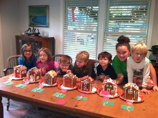 But an underlying theme to this sacred holiday is the joy of children and family traditions. All seven of my grandchildren have at most a two-minute reacquaintance period and then they're off and running. The noise level in the house is worse than ten jet planes and there are of course occasional tears, accusations, and fits. But on the whole it's happy. Their Uncle Colin made a gingerbread house for each child and each decorated his or her own today--and each won a prize in a different category. Then there were running gun battles throughout the house not only encouraged but led by two men in the forties. The children hardly stop to be loved or hugged.