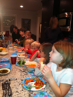 So now I'm home savoring memories--Ford and Jacob taunting me this morning with mischief in their eyes, then running screaming when I said I'd get them; Sawyer's intense concentration on building a rocket; Maddie's wonderful voice and guitar music; Eden's taattoos that she plastered on each child; Morgan sliding down the pole from the circular staircase I don't know how many times and Kegan finally following her lead. Kegan at four avoids me and some of his aunts--I think he's shy, because he'll grin but back away. They are all wonderful, and I am so blessed.
