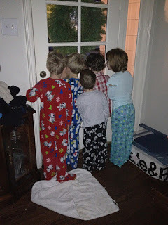 A Christmas Eve photo that I find beond sweet: They're staring at the reindeeer food they put out, waiting for reindeer to appear. Unfortunately it rained and as someone said the reindeer food turned to oatmeal. Still, the hopefulness of children is so much a part of Christmas and its joy. I've read posts that say "Okay, we're done with Christmas. Let's move on." I'm not ready to let go of the spirit. The first child left today, a whole family will be leaving in a few minutes, but we've had three glorious days together.