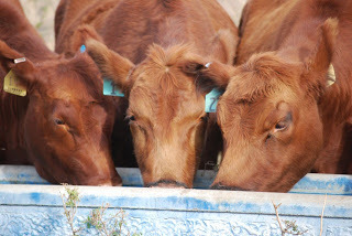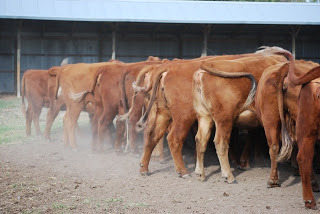 Can't resist posting these pictures of some of my brother's cattle--Pam, one of my weekend guests, took the pictures, and I thought they were striking.