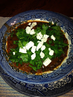 And of course guests give me a good chance to cook. Tonight it was black bean soup with feta and fesh cilantro--colorful and good. I had made some of Jacques Pepin's fromage fort (strong cheese) and I spread it on a portobello mushroom and broiled it, then cut it in small wedges. Great appetizer, if a bit garlicky.
