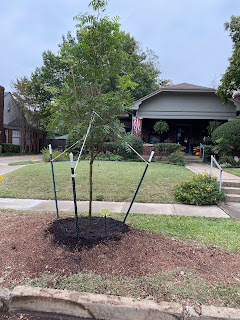 There came the day that thecity tree crew informed me the tree was rotten inside and hollow. Because it wasin the boulevard between street and sidewalk, it is legally the city’s tree,and they said it had to come down. Jordan took pictures of the demolition, butI hid in my cottage not wanting to watch. With Christian’s help, we replaced itwith a Chinese pistache—it’s a pretty tree, doing pretty well now and supposedto have brilliant colors in the fall (taking into account this is Texas and wedon’t get a lot of fall color). The pistache will never be as tall and majesticas the late elm, but it is a tree, and I am grateful.