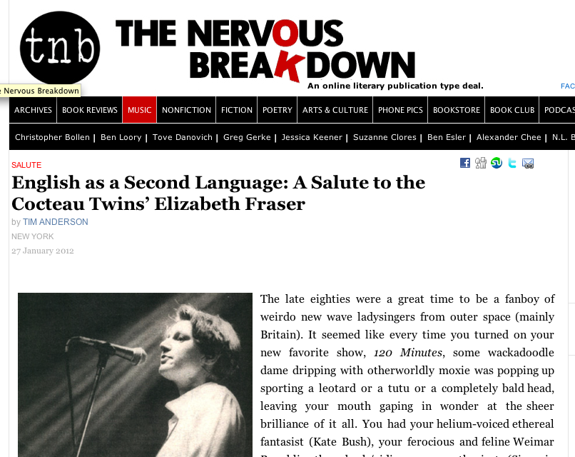 The late eighties were a great time to be a fanboy of weirdo new wave ladysingers from outer space (mainly Britain). It seemed like every time you turned on your new favorite show, 120 Minutes, some wackadoodle dame dripping with otherworldly moxie was popping up sporting a leotard or a tutu or a completely bald head, leaving your mouth gaping in wonder at the sheer brilliance of it all. You had your helium-voiced ethereal fantasist (Kate Bush), your ferocious and feline Weimar Republic throwback/riding crop enthusiast (Siouxsie Sioux), your tiny elfin powder keg (Bjork of the Sugarcubes), your scary trannie android (Annie Lennox of Eurythmics), and your testy and tempestuous ingénue (Sinead O'Connor). All of these ladies had allure to burn and the musical chops to back it all up.