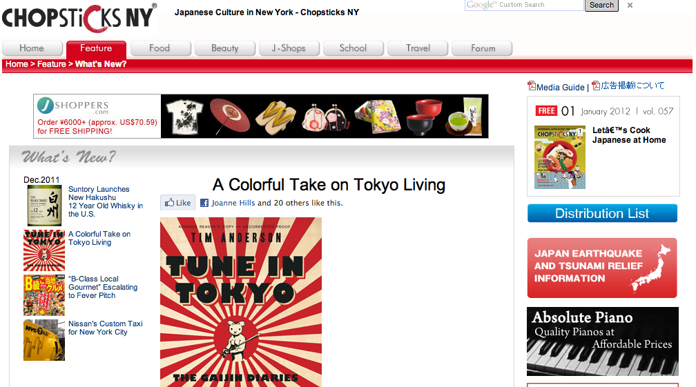 Ladies, Chopsticks NY is a bi-weekly magazine that covers all things Japan in NYC. Well, hold on to your bobby socks, because they've given Tune in Tokyo a great review! Go read it and patronize their sponsors or something!