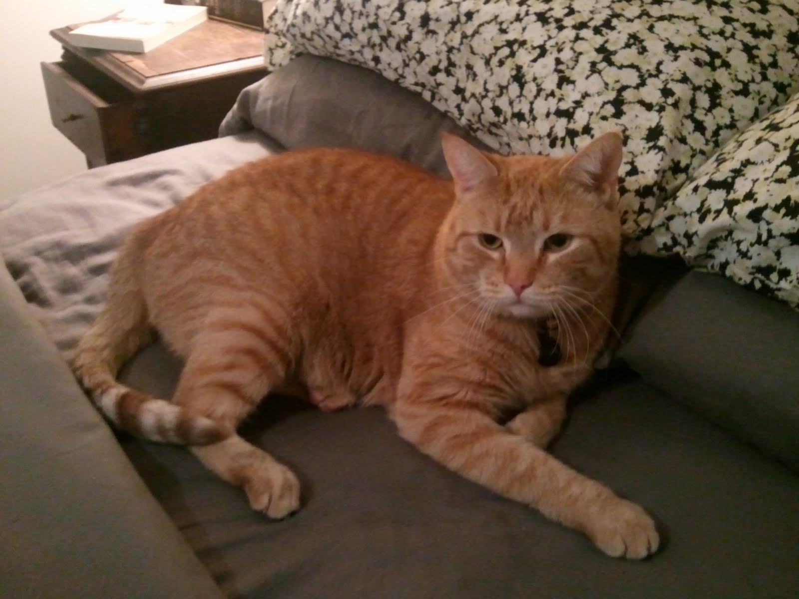 Willis, my friend Dani's cat, was devastated that he didn't get to go to my reading but he made himself feel better by eating a couple cheeseburgers and getting even fatter. Ok, bummer alert: