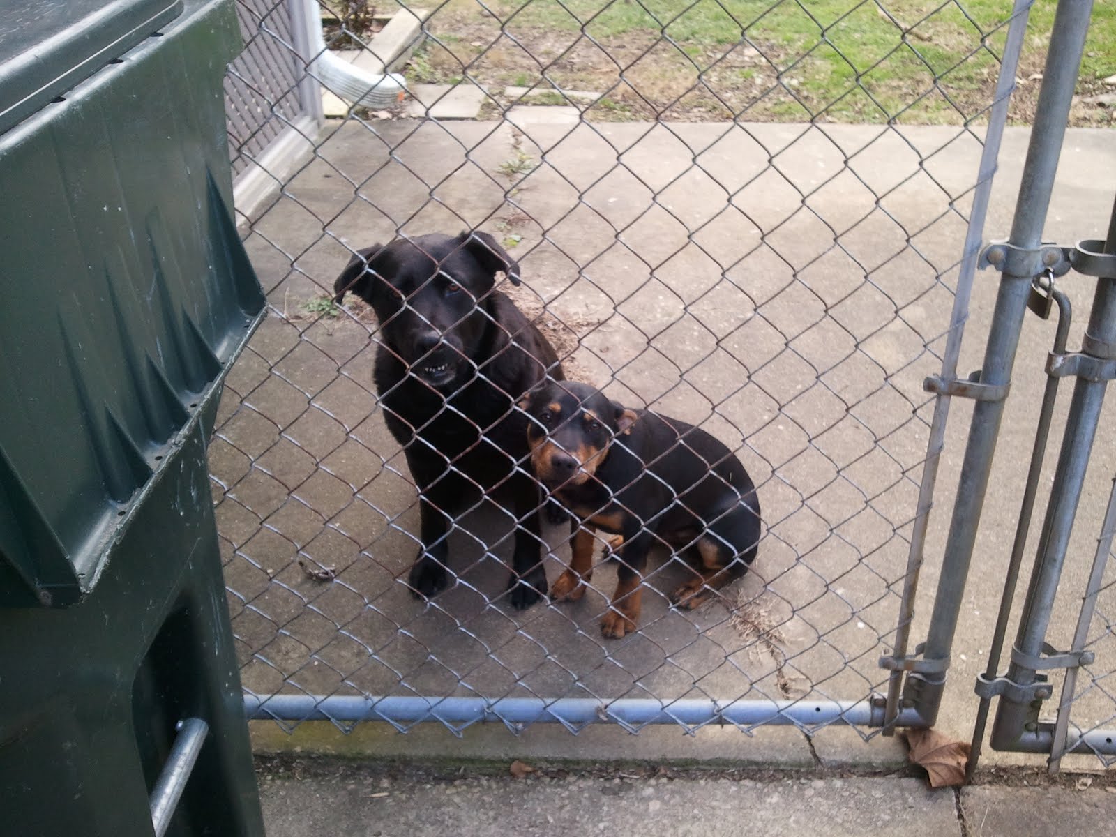 And here's another of Griffin and his buddy Youna, who is also an attention hog and never sits still, so I had to move away to take this one, therefore they look like unhappy prisoner dogs but they are not!