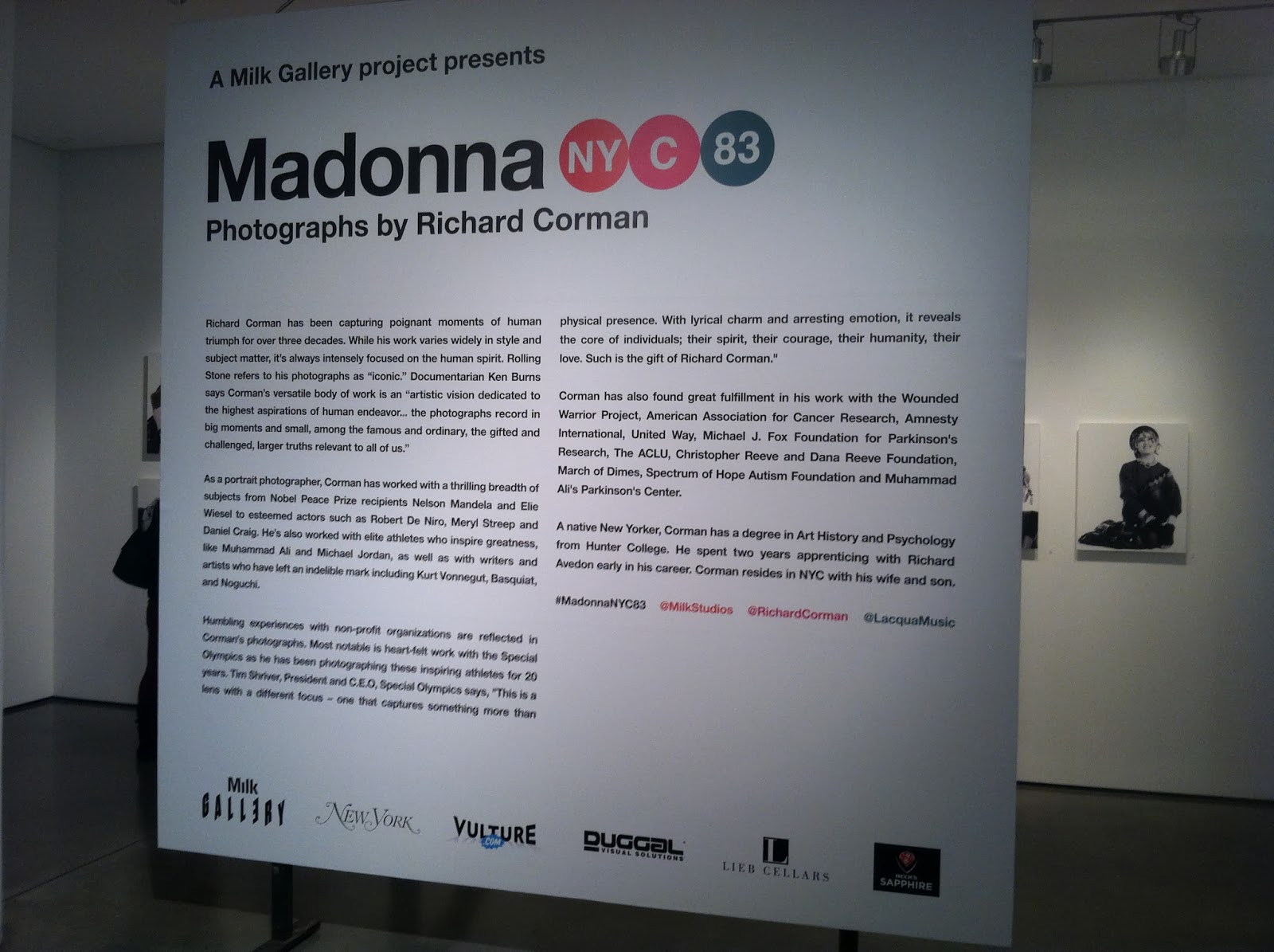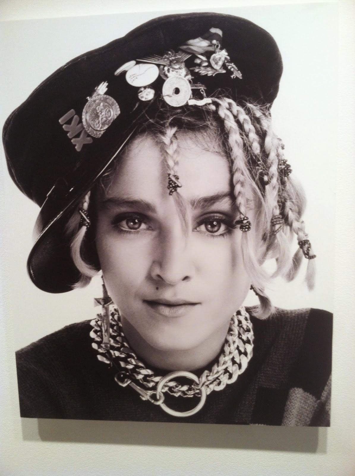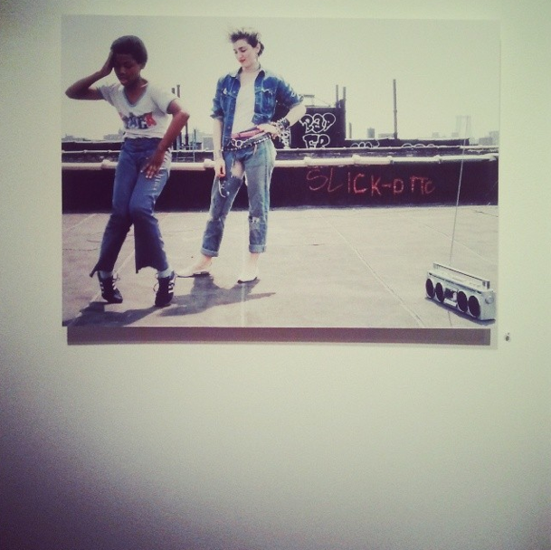 It's true! More amazing, in fact: one guy, Richard Corman, actually photographed Madonna early in her career, even before she had an album out, or even owned her own upside-down crucifixes. And this fellow is being celebrated at Milk Gallery in NYC with a small but fun exhibit that contains many great shots of our lady hanging in the East Village, and a few shocking photographs of her apparently having lost her mind, braided her hair, and auditioned for Run-DMC?