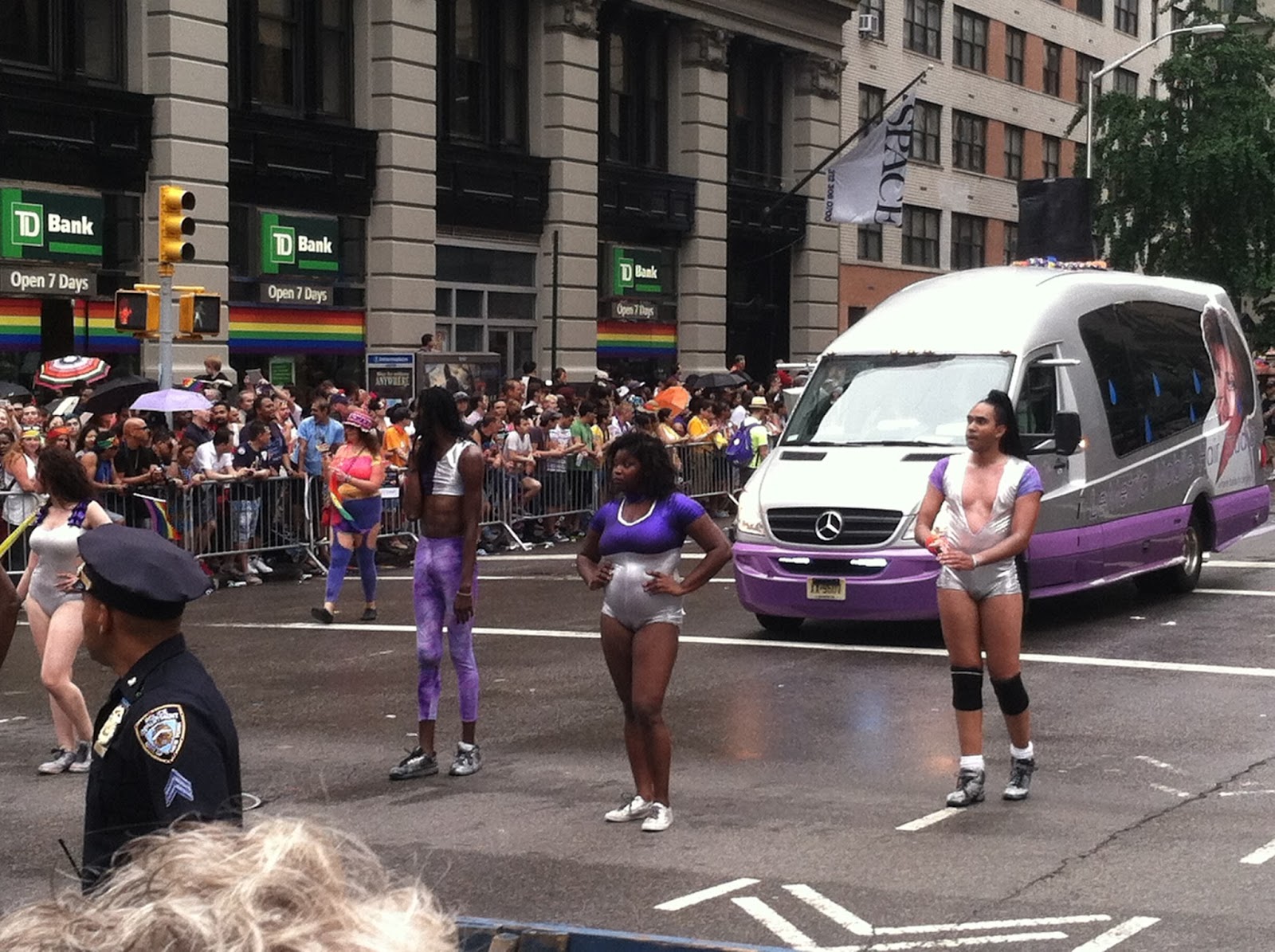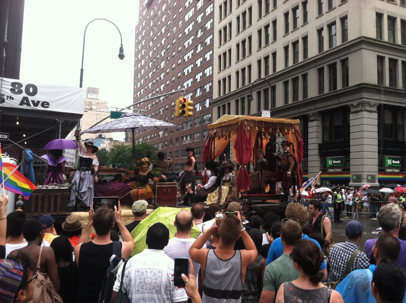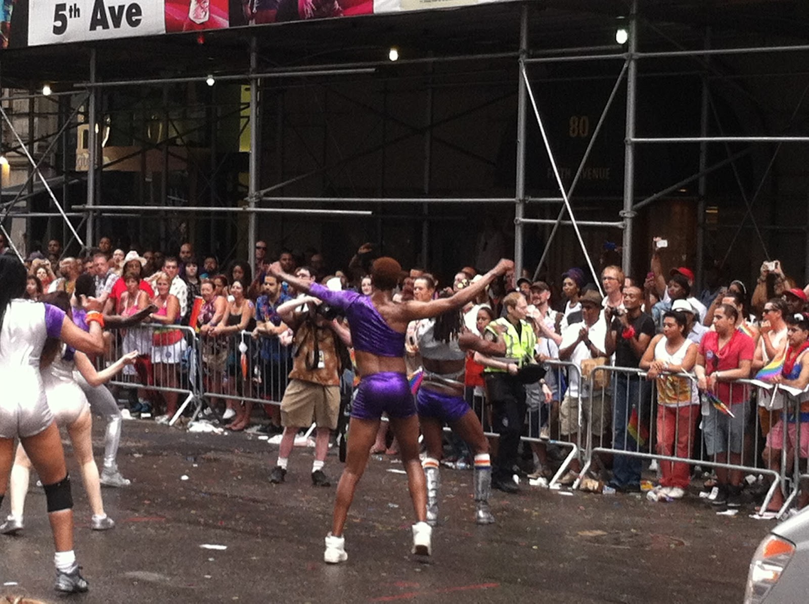 Usually I only end up at a parade by accident--say, because I forgot it was happening and wanted to simply make my way home from work or make my way to the Y for a swim or make my way to H and M to return the latest thing I bought that was the wrong size because everything at H and M is apparently tagged with whatever label is closest at hand in the Indonesian sweatshop. But that's a different blog post.