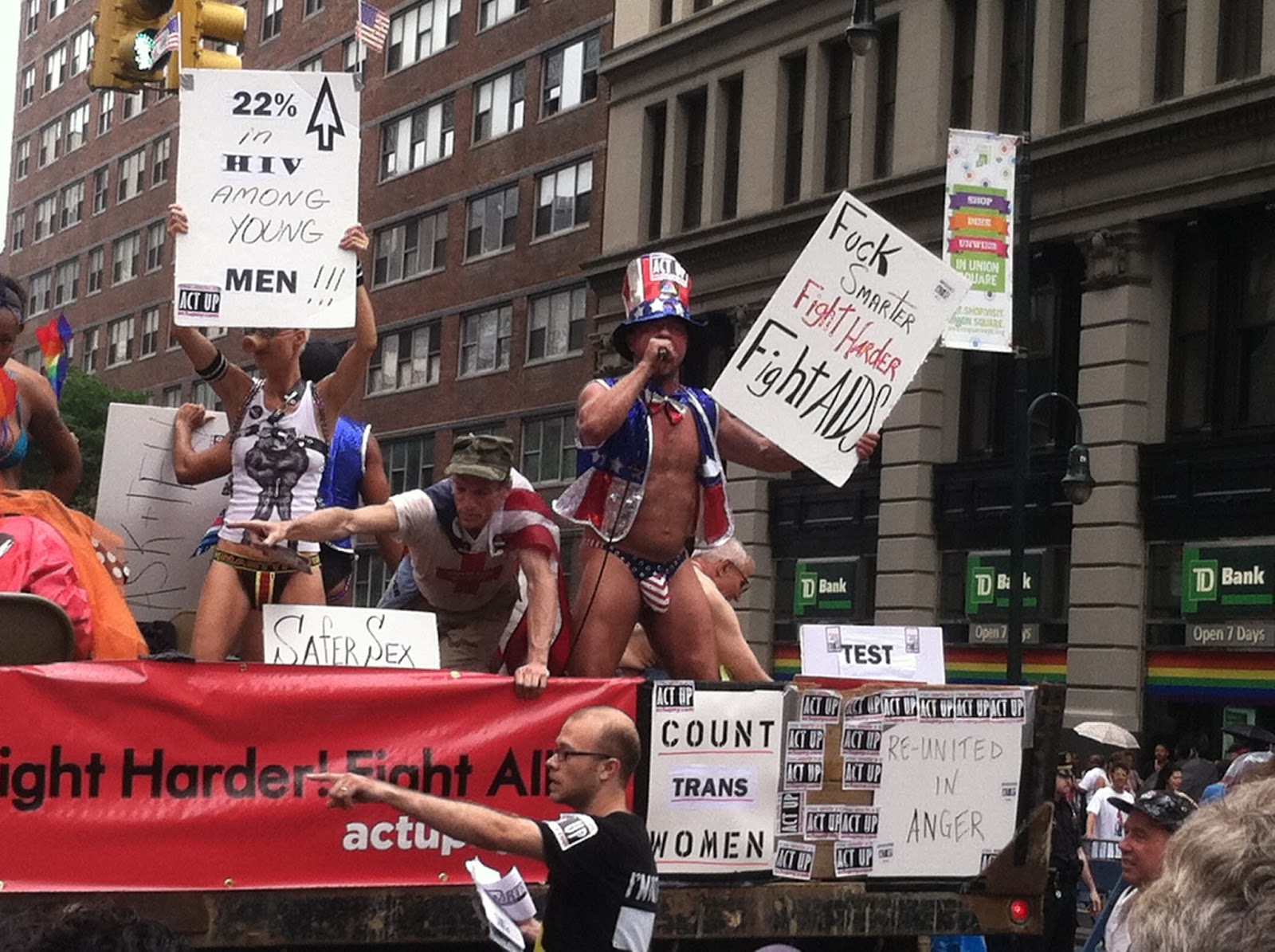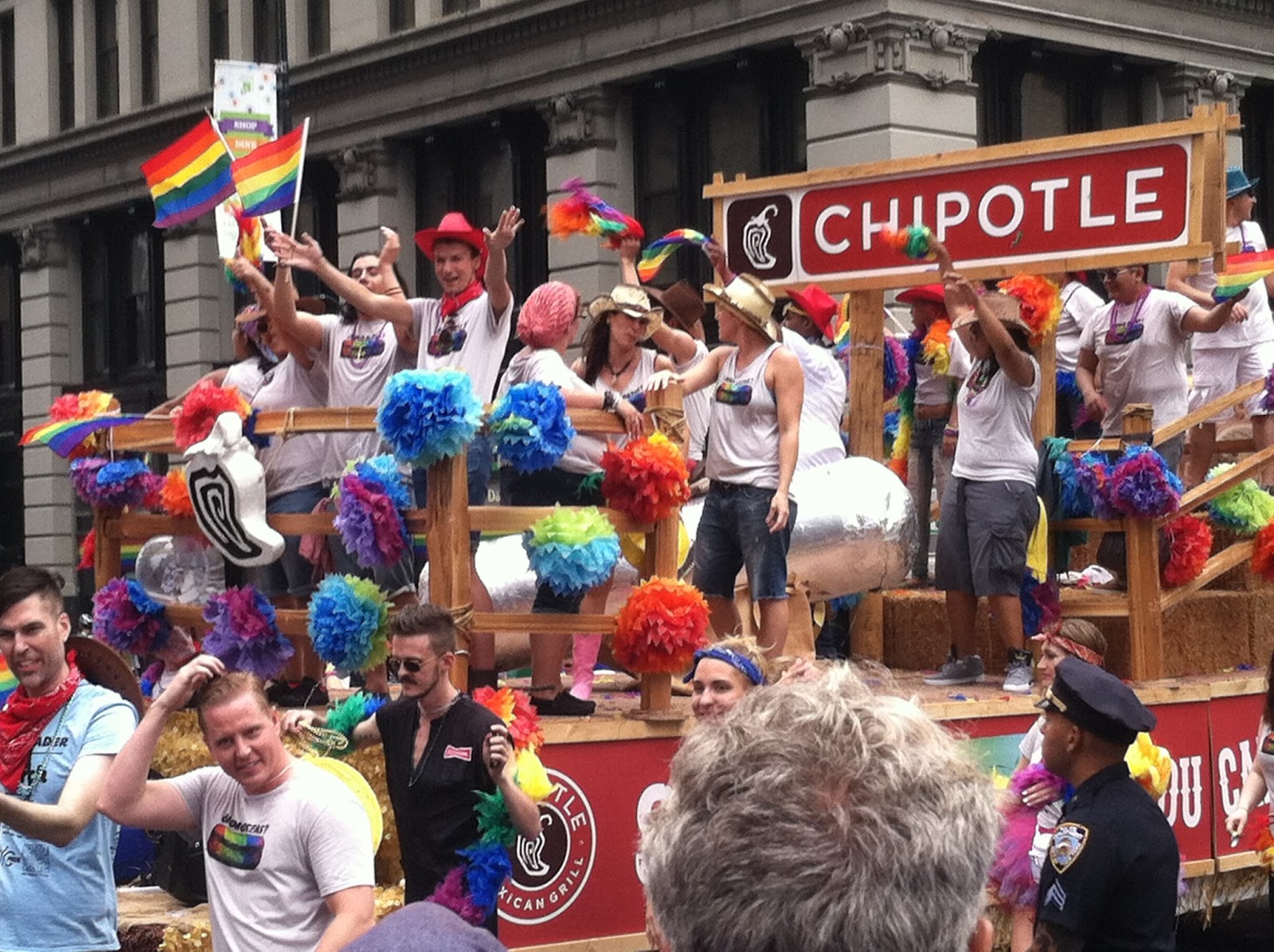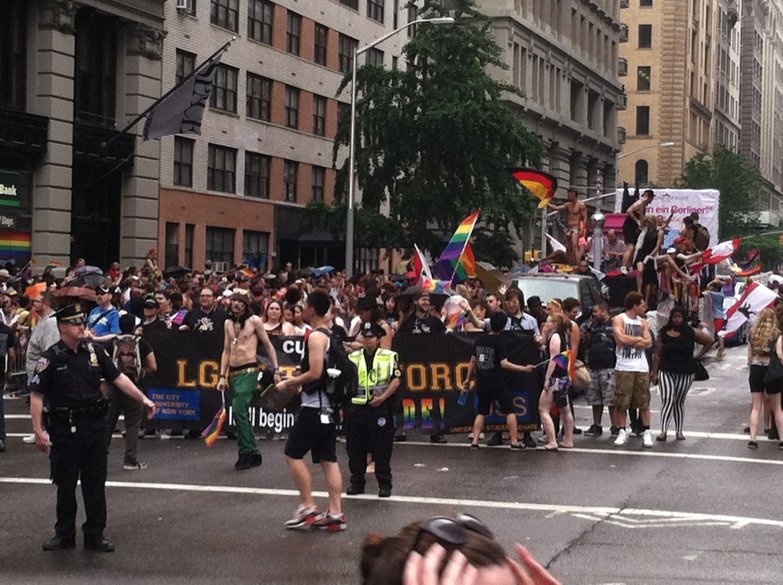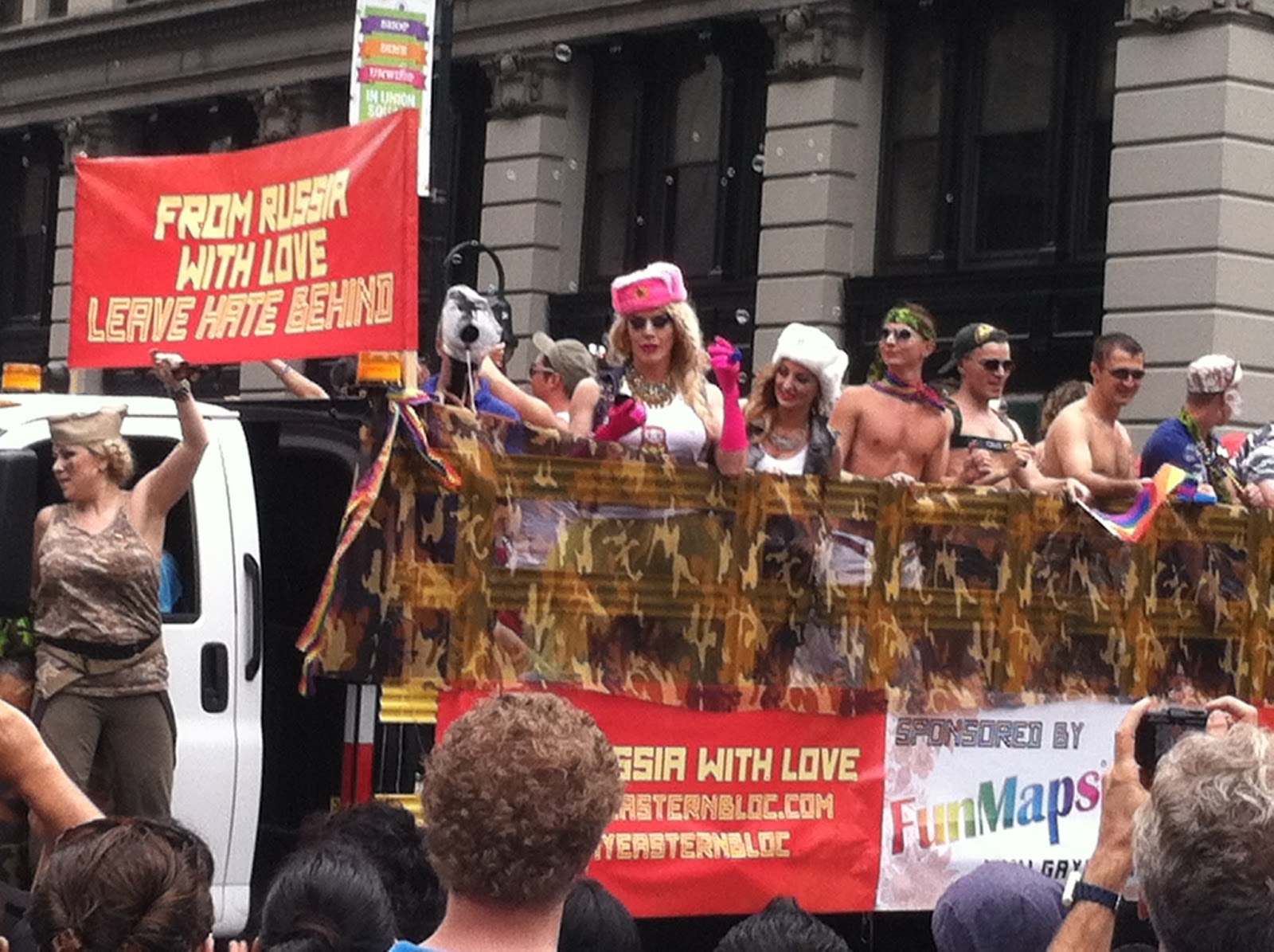 Usually I only end up at a parade by accident--say, because I forgot it was happening and wanted to simply make my way home from work or make my way to the Y for a swim or make my way to H and M to return the latest thing I bought that was the wrong size because everything at H and M is apparently tagged with whatever label is closest at hand in the Indonesian sweatshop. But that's a different blog post.
