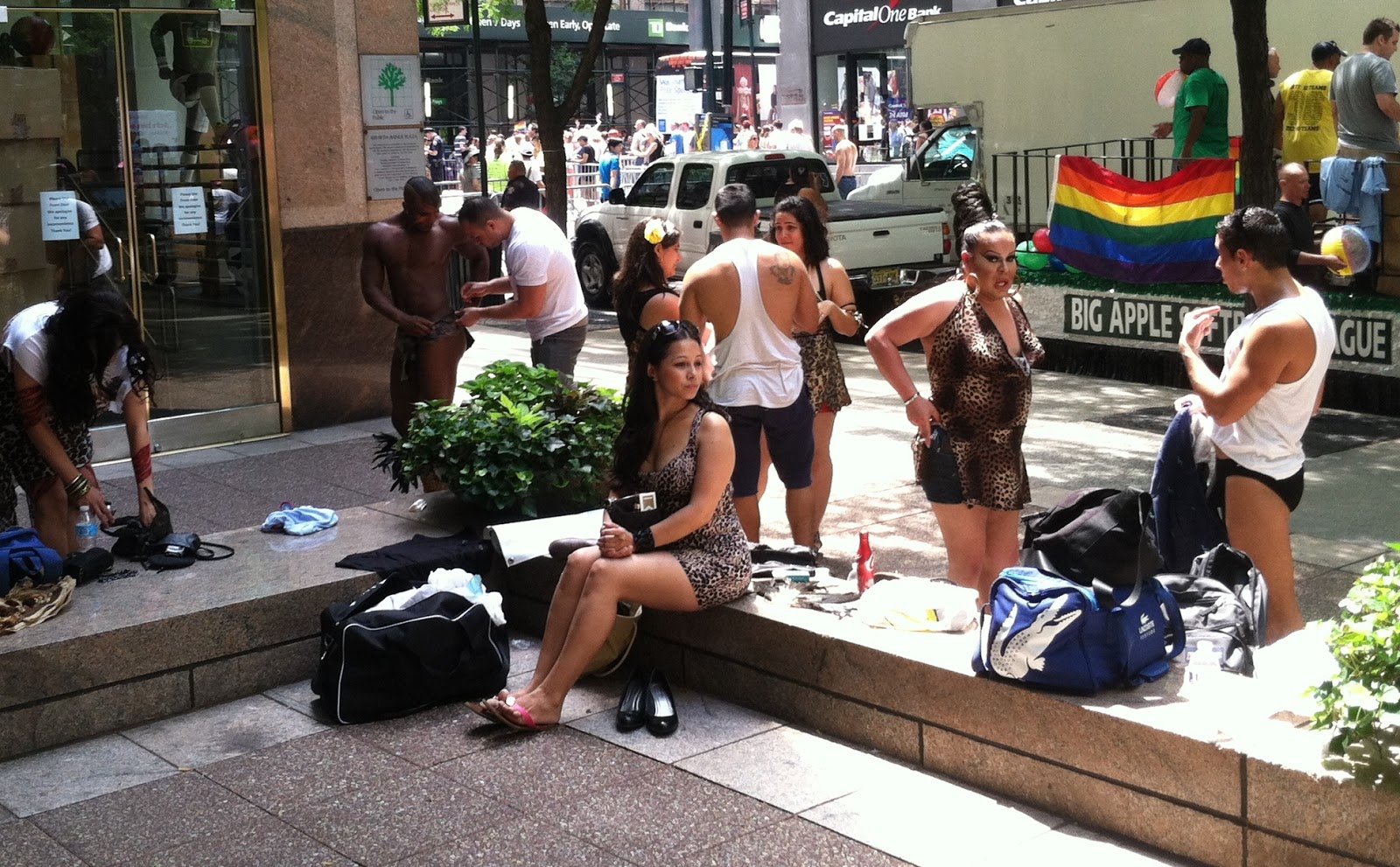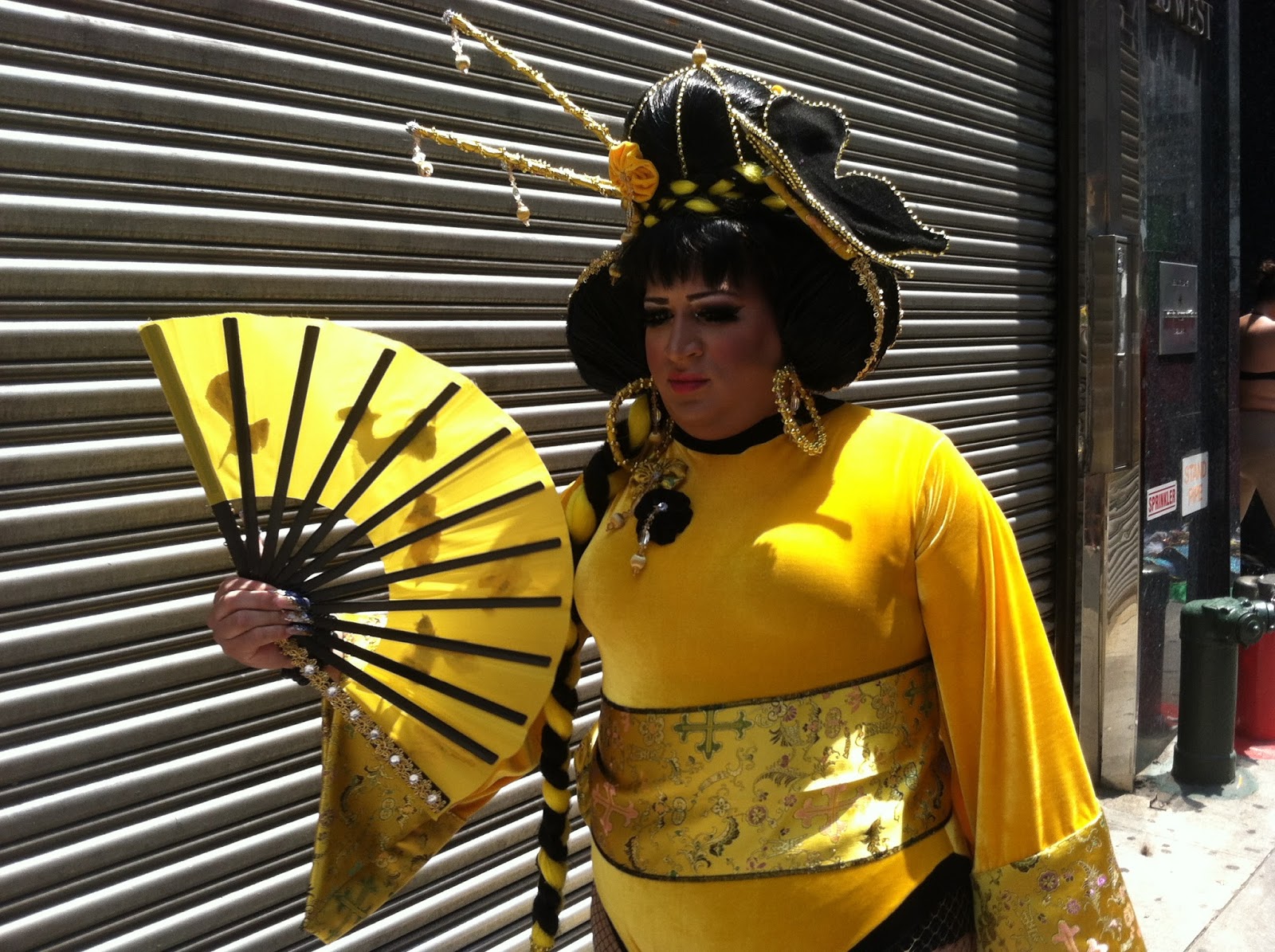 I immediately felt underdressed when I saw this lovely shemale bringing the rainbow realness to 37th Street between 5th and 6th.