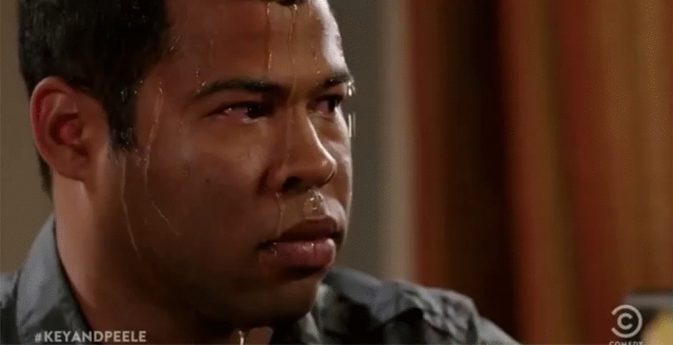 The part when the sweating is getting kind of ridiculous
