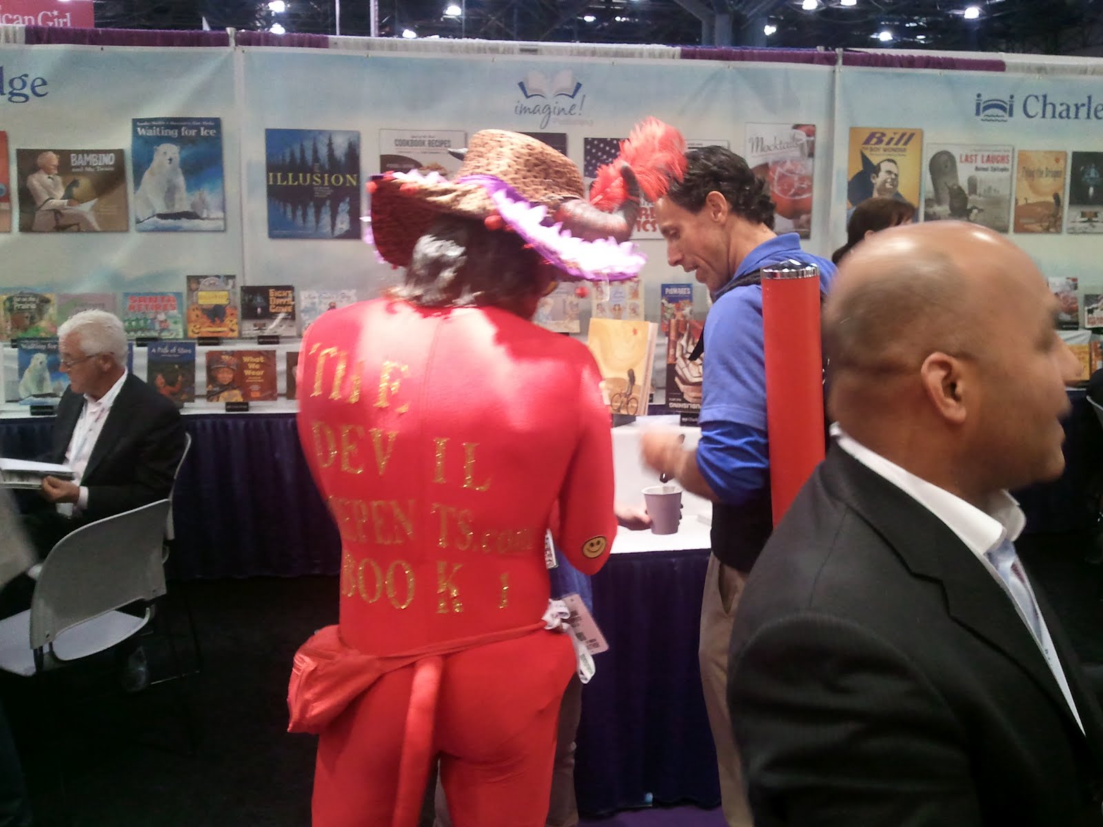 Well, it's June, kids, and once again, here I am, your faithful media personality, filing a report from Book Expo of America, NYC's annual galaxy-sized smut carnival clusterf*ck showcasing the best, the brightest, the most random, and the most embarrassing that the World O' Books has to offer. As you can see from the picture above, Satan himself was on hand promoting his new book, The Seven Hats of Devilishly Successful People, with a Foreword by his twin sister's anchor baby Ann Coulter. Everyone was selling something, so let's dive right in with SeeTimBlog's totally blinkered and blurry BEA coverage and try to discern something, anything.