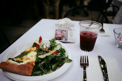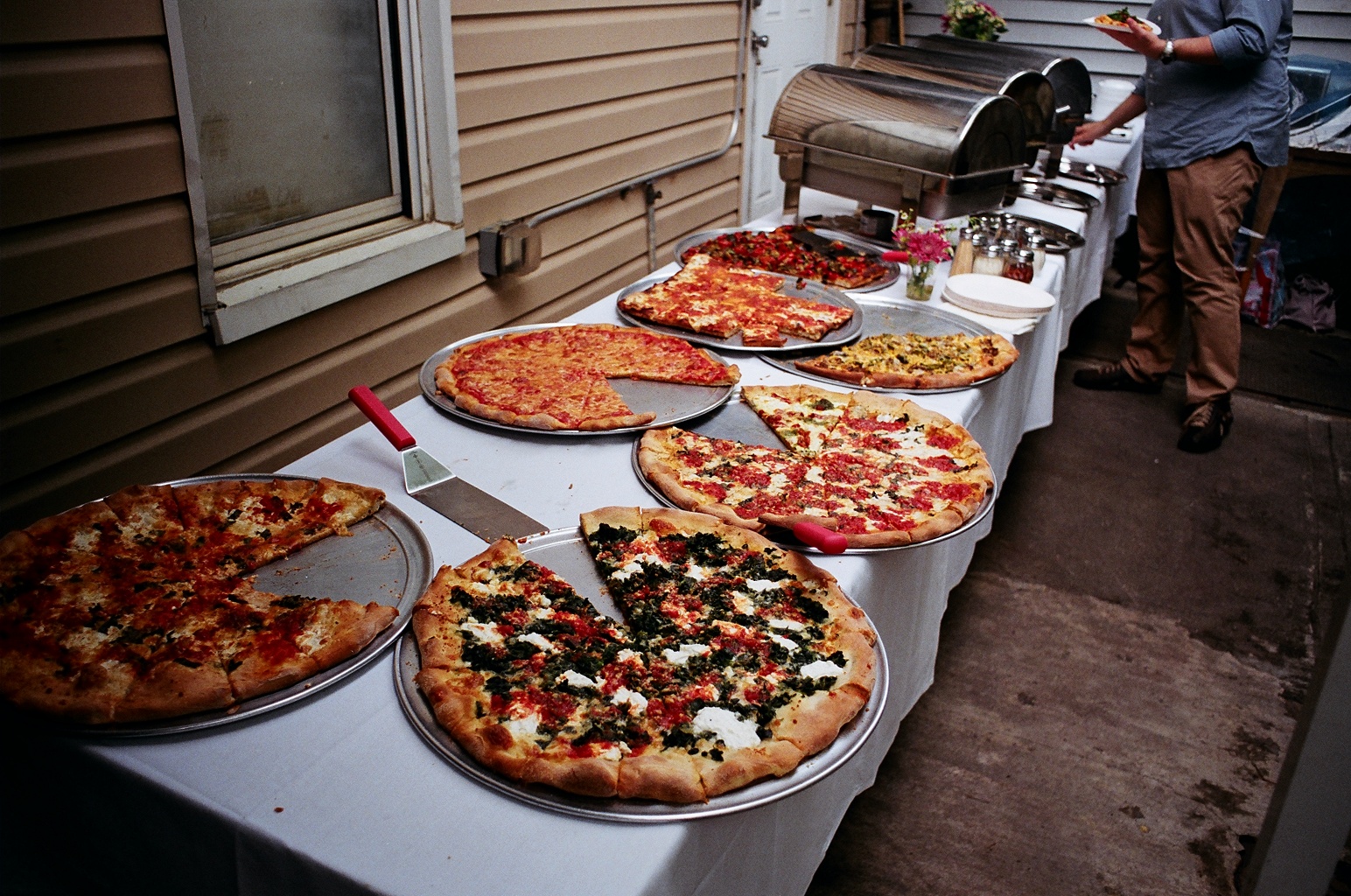 Pizza and pasta from Carmine's in Brooklyn, our favorite restaurant. Tons of leftovers and that's fine because you haven't lived until you've had meat lasagna for breakfast.