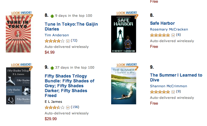 Folks, this great nation is just going to hell, is it not? I mean, look at this Kindle Top 10 List: The Fifty Shades of Grey Trilogy Bundle at #9 and then some depraved piece of idiocy like my book Tune in Tokyo: The Gaijin Diaries charting even higher, at #8? Good Lord, save us from ourselves!