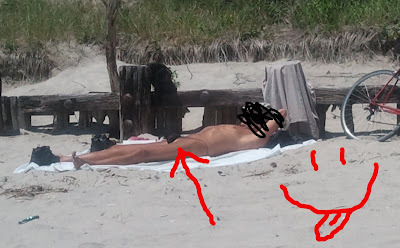 Well, it was the first official weekend of summer, ladies and gentleman, and we all know what that means: that's right, it was time for a two-hour bike ride to the one and only Ball Sack Beach at Fort Tilden. The water was delightfully freezing, the weather was spectacular, the hipster titties were swinging, and the ball sack sacks were just everywhere. One would have thought that, this being Pride weekend in NYC, all the best ball sack sacks would have been in Manhattan on some hilarious float made out of pink and purple bottles of lube, but no, quite a few of them were catching some rays in Far Rockaway, just stone cold ball sack cradlin'.