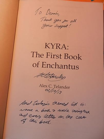 The First Autographed Copy of “Kyra: The First Book of Enchantus” by Alex C. Telander