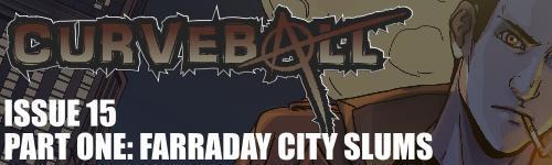 Farraday City SlumsWater sprays in all directions as CB misses a step, stumbling into an ankle-deep puddle. He fights back the urge to swear and steadies his pace as he races down the alley. He sees a flash of green—BDU pants—as Bruiser disappears around the corner of a building at the far end.