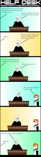 JUDGE: Well, my copy says the next case is “Non-threatening Plaintiff vs. Nondescript Defendant.”