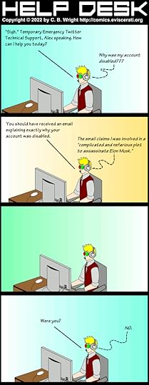ALEX: (Sighs.) Temporary Emergency Twitter Technical Support, Alex speaking. How can I help you today?