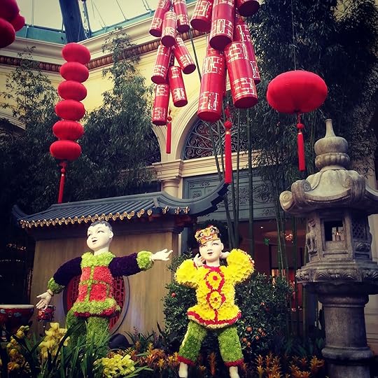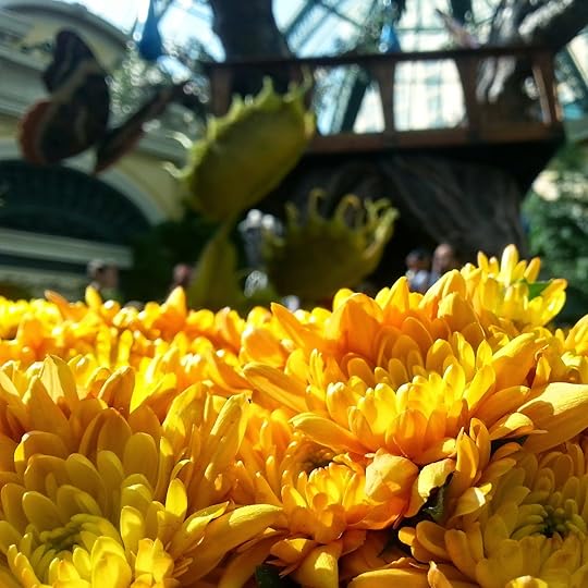 I've gone to the Bellagio to write and take pictures, but mostly just to people watch and think. It's nice to go from a city that mostly smells like smoke into a fresh garden. And it's an adventure to see what they are going to do next. They have new statues and new flower arrangements and sometimes birds and butterflies and it makes the Bellagio gardens one of my favorite places in the world. Then once you've walked through the gardens you get to go watch the fountains and if you stand close enough, feel the spray of water on your face.