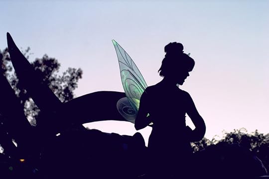 Little Cinder could stand on a little rise in front of a tree and that way no one could obscure her view. There was even a light breeze blowing the roses this way and that, and Mammy Grand, having finished with her disapproving looks, smiled at them and shook her head. Daddy Pappy knew she was worried about them breaking park rules but she would know because she knew him that he didn’t give a damn. At that moment, a huge blast of trumpets rose from hidden speakers, the park lights went dim, and an an announcer said, “Ladies and gentlemen, children of all ages, please welcome a special guest here to meet you on this most magical night!” And music blossomed out – “When You Wish Upon a Star!” Spotlights shone on the high turrets of Cinderella’s castle, where a beautiful, sparkling sprite with wings rode a zipline over the crowd.